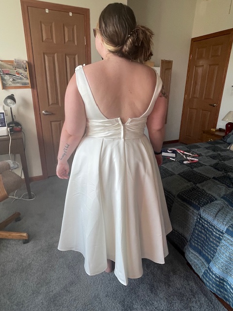 Radical change to off shoulder and shortenedRadical change to off shoulder and shortenedBefore alteration-straps shortened-let out in waistBefore-turning this into corset styleoriginal dress before allterationsoriginal dress before allterationsdress after allterations removing sleeves/adding corset backdress after allterations removing sleeves/adding corset backBefore-will have straps shortened, let out in waistBefore-will have straps shortened, let out in waistBefore-made into corset styleMade by combining 3 patternsBandeau top over base of dressWaist taken in and shortenedBefore adding “bow”After adding “bow”Shows “french” bustle