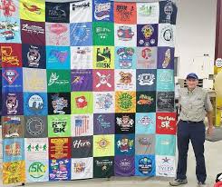 And don’t forget the t-shirt quilt! We can create one out of your favorite t-shirts. See the photo below for an example of what it will look like!